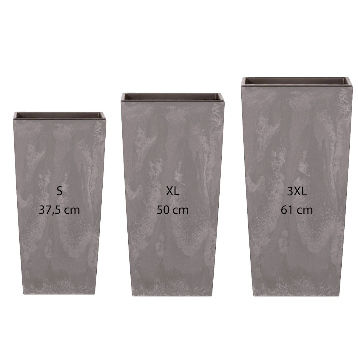 WellHome - Set 3 Hohe Pflanztöpfe 11,4/26,6/49 L Urbi Square aus Kunststoff in Anthrazit mit Wasserreservoir