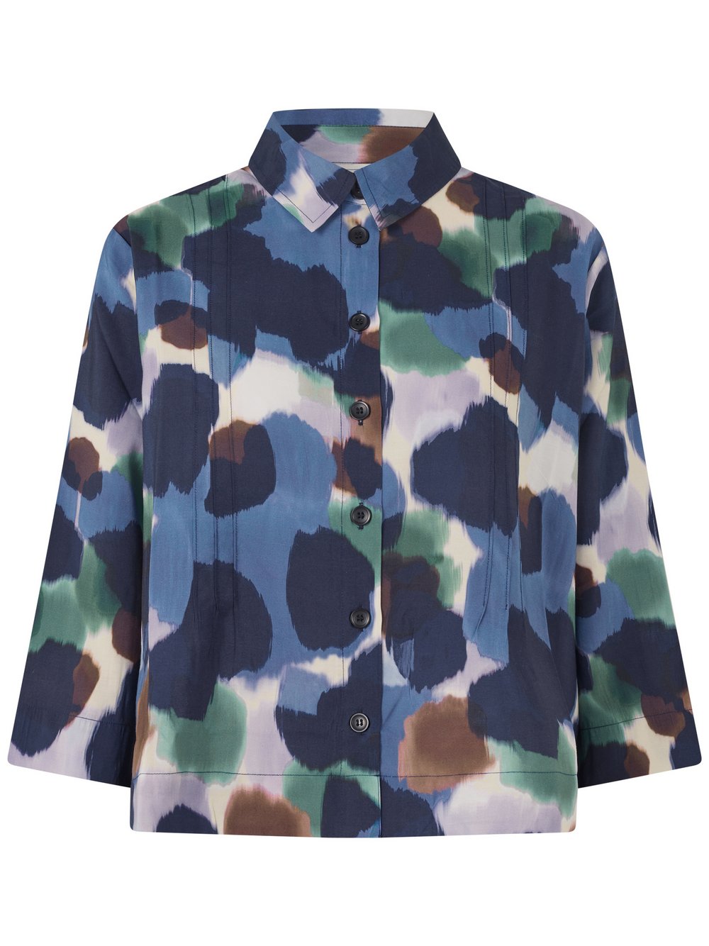 3/4-Arm-Shirt CLASSIC "Shirt", Damen, Gr. 54, blau (eisblau, marine, bedruckt), 95% Viskose, 5% Elasthan, geblümt, gemustert, mehrfarbig, Rundhals, Shirts 3/4-Arm-Shirt
