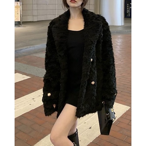 Per donna Cappotto in Pelliccia Sintetica Caldo Confortevole Bottoni Strappati Attivo Moda Semplice Vacanza Uscire Weekend Regolare Collo ripiegato Vestibilità regolare Manica Lunga Capispalla Nero
