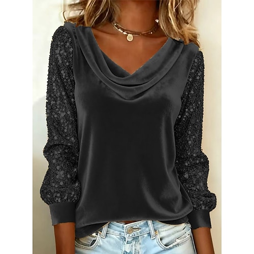 Per donna Maglietta Top estivi Tinta unica Elegante Vintage Classico Manica Corta Girocollo Top Regolari Quotidiano Uscire Weekend Paillettes Patchwork Oro rosa Nero e grigio Nero Bianco Rosa Estate