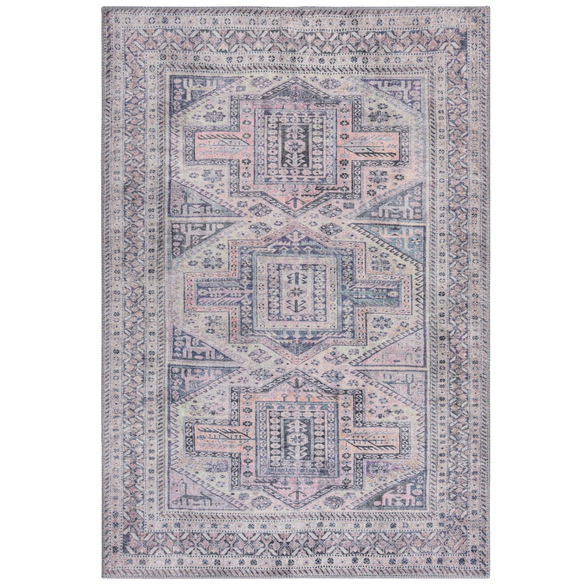 KADIMA DESIGN Waschbarer Teppich Grau-Rosa im Vintage-Oriental-Stil für Wohnzimmer und Flur | 190x290cm