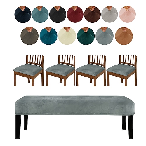 copri panca elastici in velluto argentato tinta unita, set di protezioni per panca, antiscivolo, 4 copri panca 1 copri panca lungo, copri sedie resistenti ed eleganti