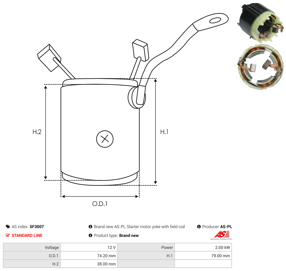 AS-PL Erregerwicklung, Starter SF3007 Universal 12V 74,20mm für VW 02M911209E 02M911115P