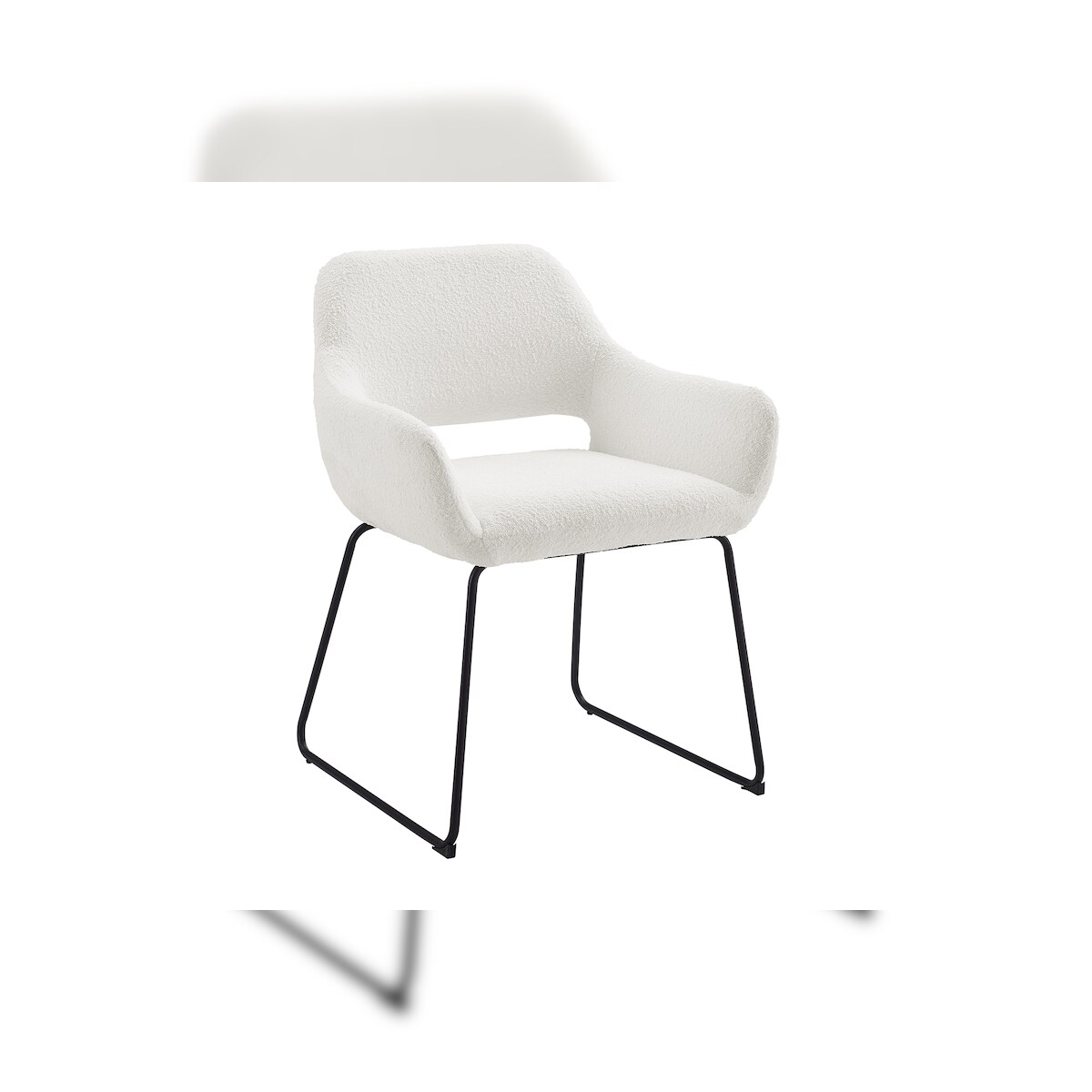 SalesFever Armlehnstuhl mit Rücken Cut-Out | Stuhlbezug Bouclé Stoff | Kufengestell Metall | B 63,5 x T 59 x H 83 cm | weiß – matt schwarz