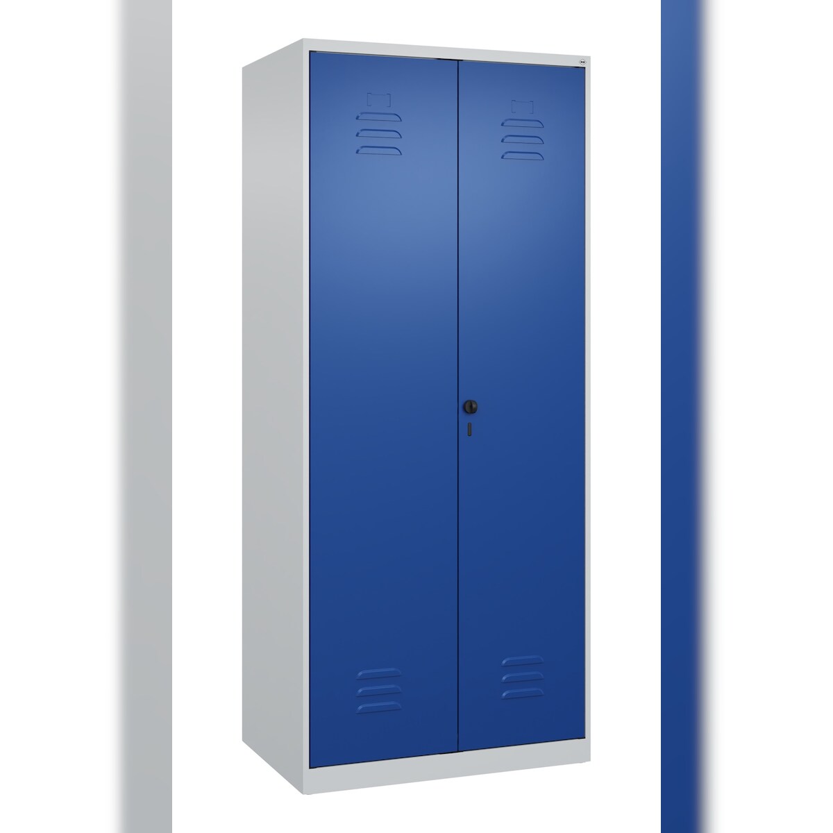 C+P Aufbewahrungs Doppel-Spind Classic PLUS, 2 Abteile, 5 Fachböden, HxBxT 185x80x50cm, Sicherheitsdrehriegel, Hellgrau/Enzianblau von PROREGAL