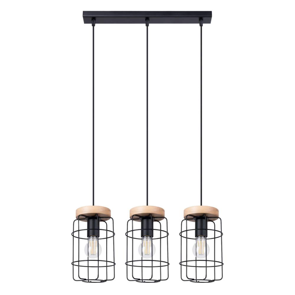 Lampe suspendue acier/bois H 115 cm