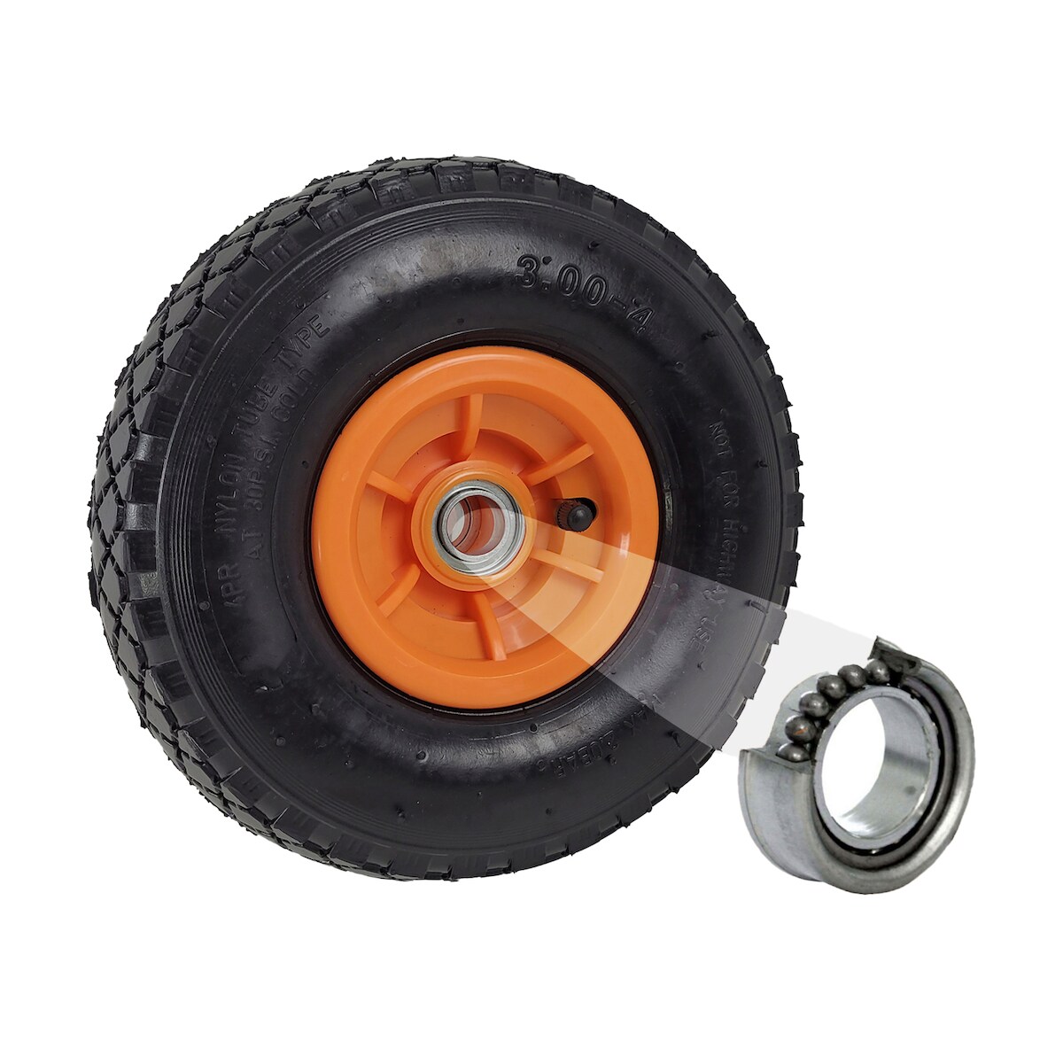 Baumarktplus Sackkarrenrad Luftrad 260x85 mm 3.00-4 60 mm versetze Nabe Ø 20 mm orange robustes 4 PR Gewebe