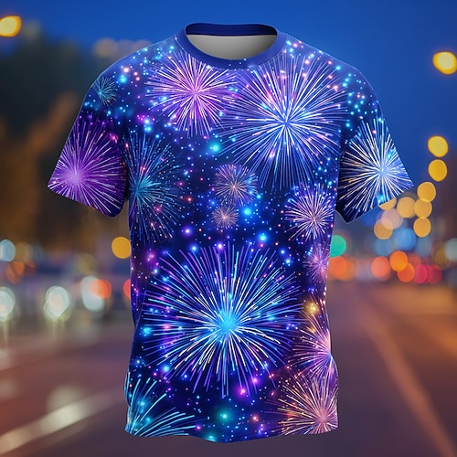 Capodanno Per uomo Buon anno Fuochi d'artificio 2026 Maglietta Manica Corta maglietta Stampa 3D Girocollo Camicia Esagerato Designer Artistico Feste Streetwear Club Blu 3# Blu 2# Blu 1# Autunno