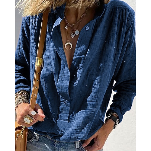 Per donna Blusa Tinta unica Quotidiano Elegante Essenziale Manica Lunga Colletto a Camicia Top Regolari Quotidiano Bottoni Blu Nero Bianco Giallo Rosa Primavera Autunno Inverno