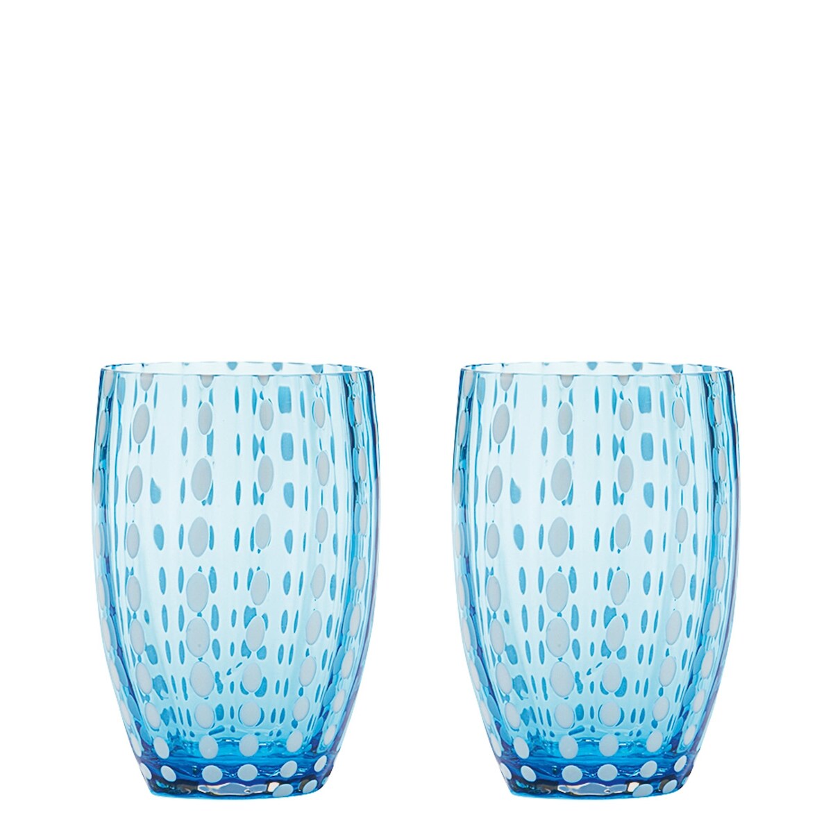 Zafferano Perle Aquamaringlas - Farbiges mundgeblasenes Glas, 32 cl, handgefertigt - Set mit 2 handgefertigten Bechern für Wasser oder Cocktails