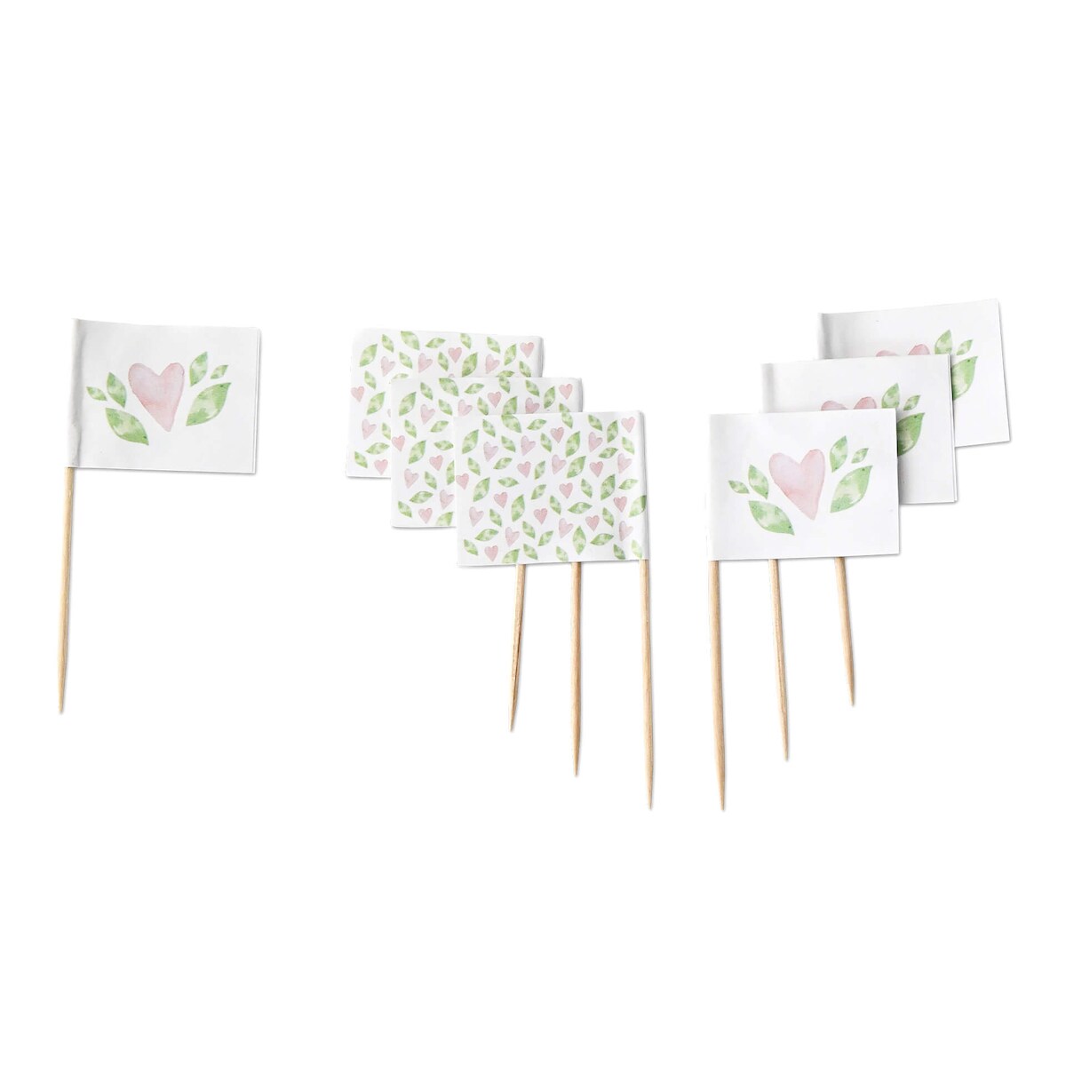 ECOFIESTA 200 Stück Umweltfreundliche Snack-Spieße Blätter & Herzen - Plastikfreie Holzspieße Minifahnen Party-Deko - Cocktail-Spieße
