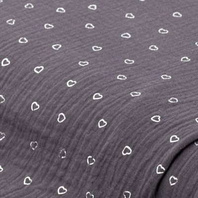 Tissu mousseline/double gaze "petits cœurs", gris/argenté