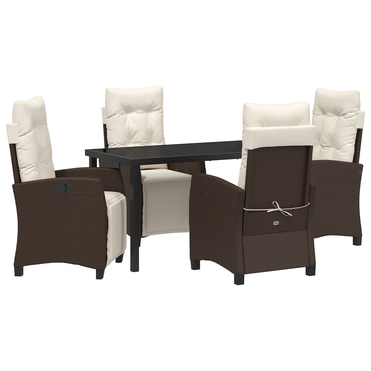 vidaXL 5-teiliges Garten-Ess-Set aus braunem Poly-Rattan.