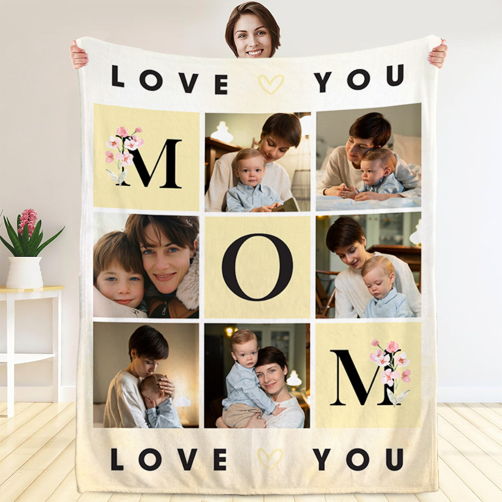 Personlig Love You Mom 6 fotokollage Mjuk plädfilt med namn Heminredning Mors dag present till mamma mormor