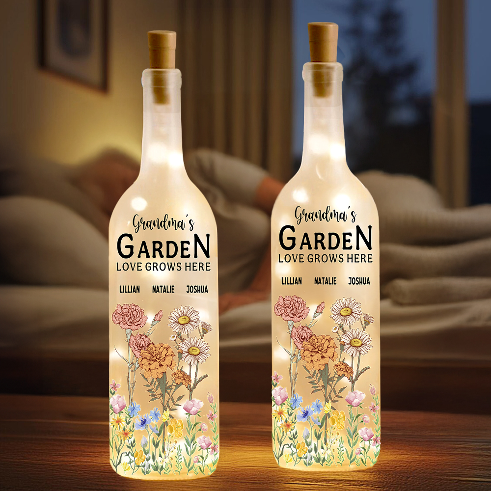 Personlig 1-18 Födelseblommor LED Nattlampa Flasklampa med namn Heminredning Mors dag Födelsedagspresent till mormor Mamma