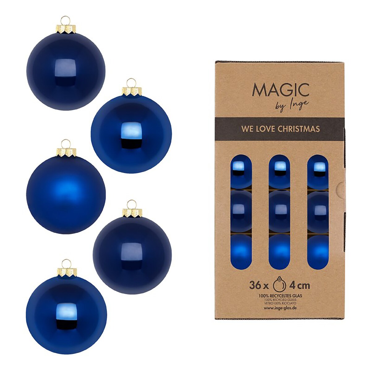 Inges Magic & Goodz 36 Weihnachtskugeln Glas 4cm matt & glänzend Christbaumkugeln Weihnachtsbaumkugeln Weihnachten Christbaumschmuck Weihnachtsbaumschmuck Königsblau