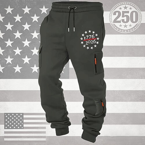 Per uomo Pantaloni da Tuta Cargo Pantaloni da tuta Joggers Pantaloni Coulisse Tasca Elastico in vita Stella Comodità Traspirante Quotidiano All'aperto 250° anniversario dell'America Vacanza Moda Nero