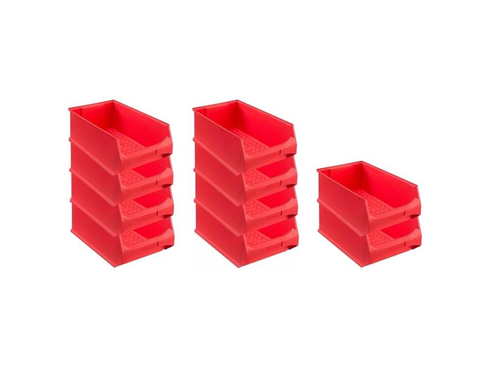 PROREGAL 10x Rote Sichtlagerbox 5.0 | HxBxT 20x30x50cm | 21,8 Liter | Sichtlagerbehälter, Sichtlagerkasten, Sichtlagerkastensortiment