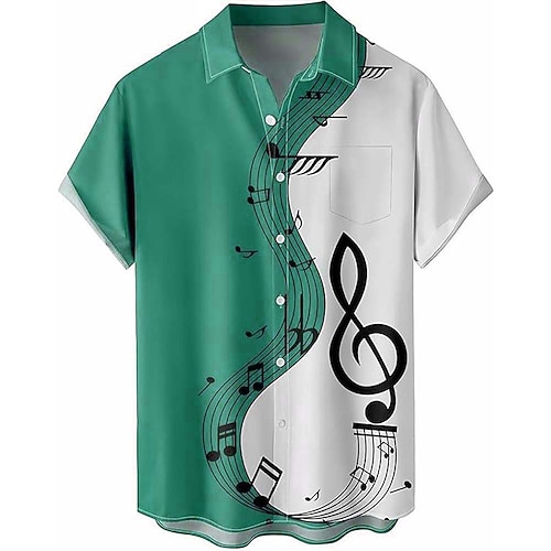 Per uomo Note Musicali Camicia Camicia Estiva Camicia con Bottoni Manica Corta Moda Casual Quotidiano Festival Musicale Estate Primavera Collo ripiegato Stampa 3D camicie con colletto Una tasca