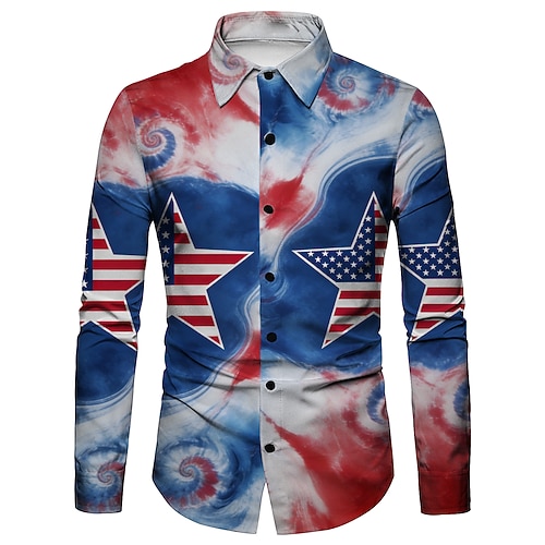 Americano 250 Retrò Vintage Anni '70 Camicia Camicia Aloha Lunghe Hippie Geometrico Etnico Costume Per uomo Mascherata 4 Luglio Feste Giorno dell'Indipendenza Semiquincentenario Adulti Camicia