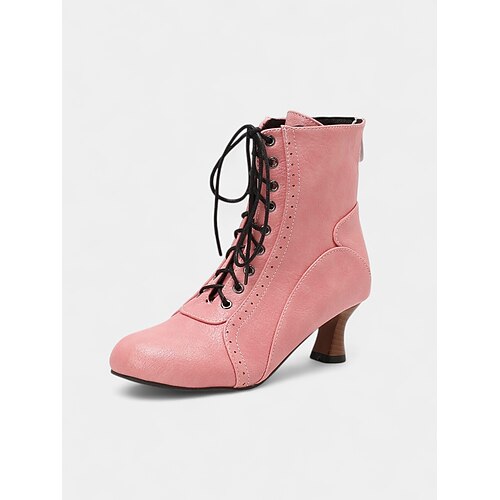 stivaletti da donna marroni con lacci e tacco a gattino - stile vittoriano vintage anni '20, ideali per uscite autunnali, tea party e feste retrò