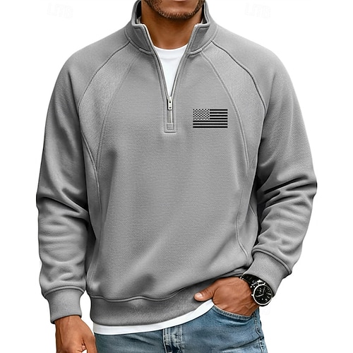 Per uomo Polo Polo con zip a un quarto Vacanza Streetwear Zip a un quarto Manica Lunga Moda Essenziale Bandiera degli Stati Uniti Patchwork Stampa Autunno Inverno Vestibilità su misura Blu Aalbicocca