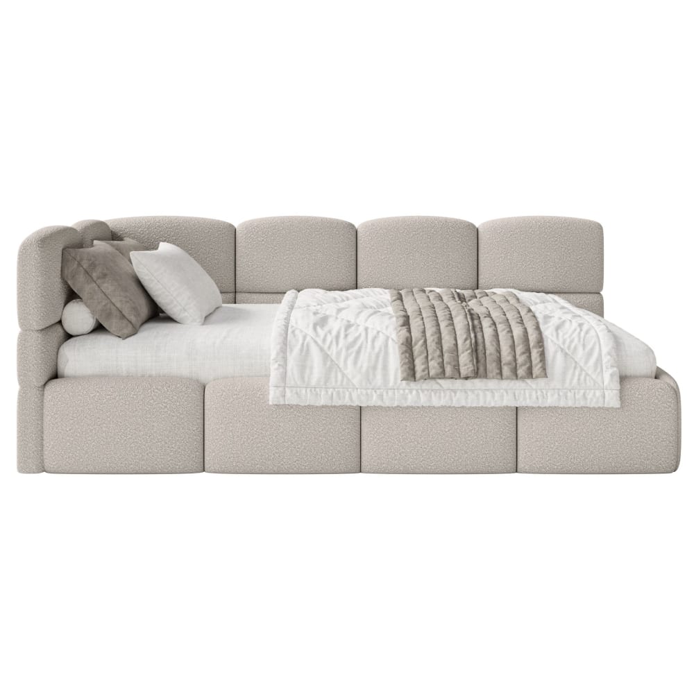 Lit ado 90x200, gauche, avec matelas, en bouclette grège