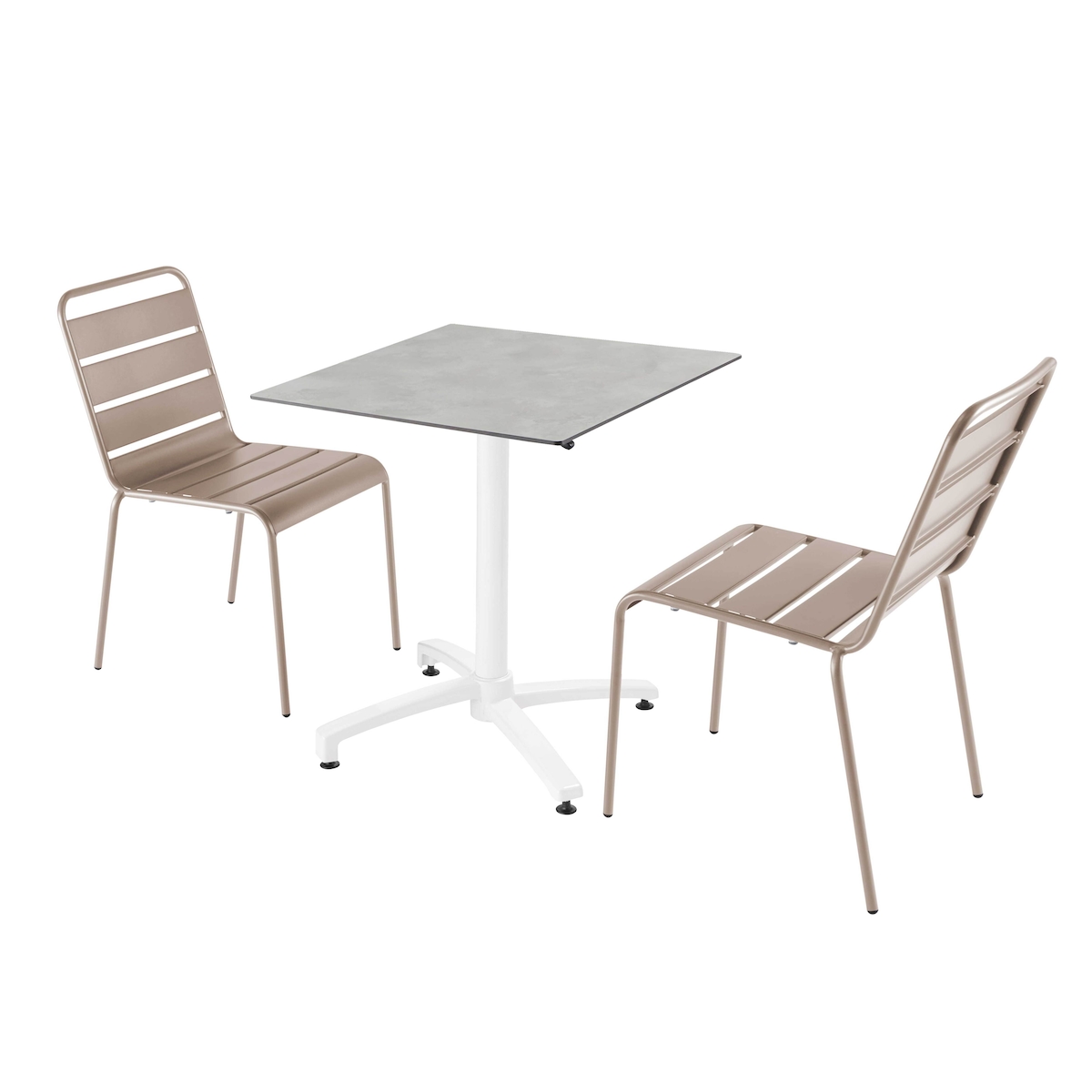 Oviala Business Set Terrassentisch aus grauem Betonlaminat und 2 taupefarbenen Stühlen