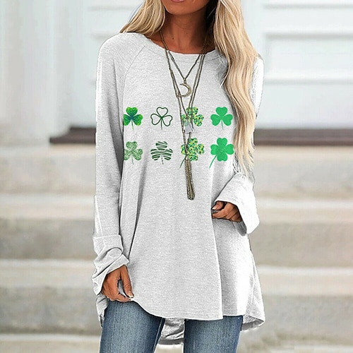 Maglietta da donna per il giorno di San Patrizio scollo a V a manica lunga grafica casual moda quadrifoglio top regolari stampa giorno di San Patrizio verde erba bianco verde chiaro verde scuro verde