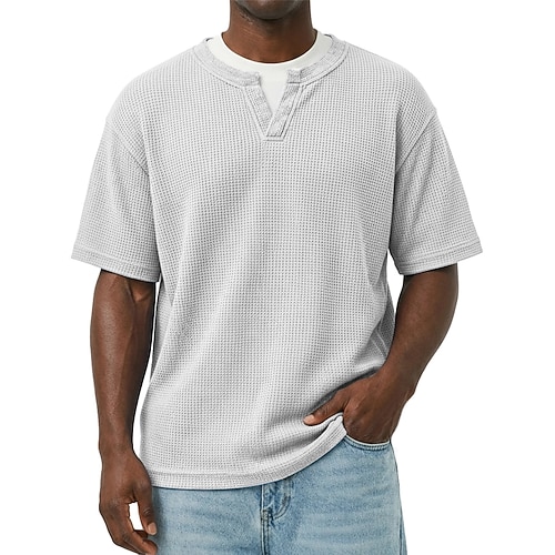 Per uomo Maglietta Waffle Maglietta Manica Corta Scollo a V Aperto davanti Estate Tutte le stagioni Tinta unica Testurizzato Moda Designer Casual Scollo a V All'aperto Casuale Quotidiano Nero Bianco