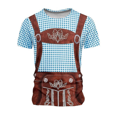 Oktoberfest Per uomo Plaid Germania dirndl Maglietta Manica Corta maglietta Stampa 3D Girocollo Camicia Vacanza Esagerato Designer Carnevale Feste Blu chiaro Blu 1# Rosa Estate Primavera Abbigliamento