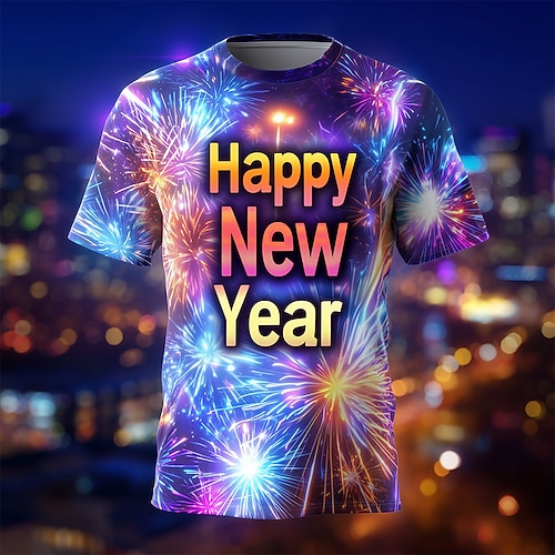Capodanno Per uomo Buon anno Fuochi d'artificio 2026 Maglietta Manica Corta maglietta Stampa 3D Girocollo Camicia Esagerato Designer Artistico Feste Streetwear Club Blu 2# Blu 1# Autunno Inverno