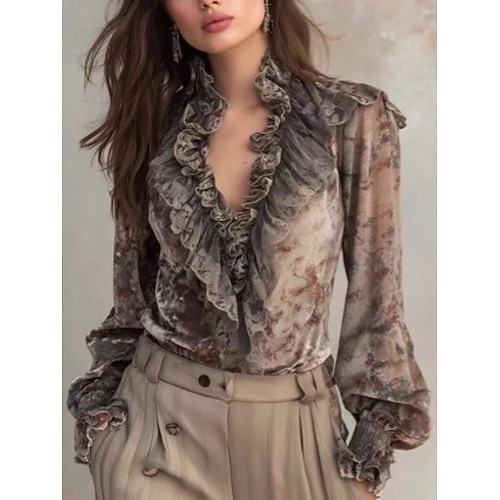 Per donna Camicia Camicia casual Camicia con volant Grafico Astratto Elegante Classico Casual Manica Lunga Scollo a V Top Regolari Quotidiano Ferie Uscire Cachi Primavera Autunno