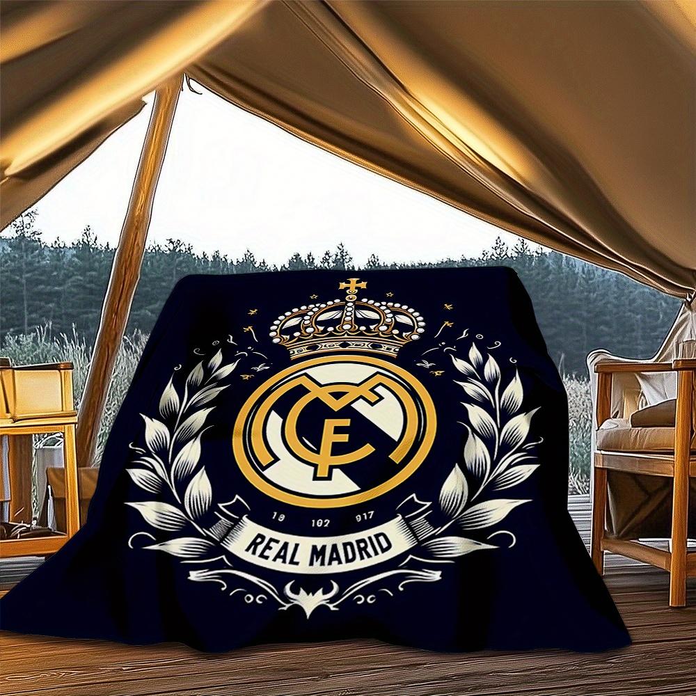 1 Stück Krone, Lorbeerkranz, Real Madrid Digitaldruck Flanell Decke, Super Weiche Plüsch Bettdecke, Decke für Sofa, Bett, Büro, 70130