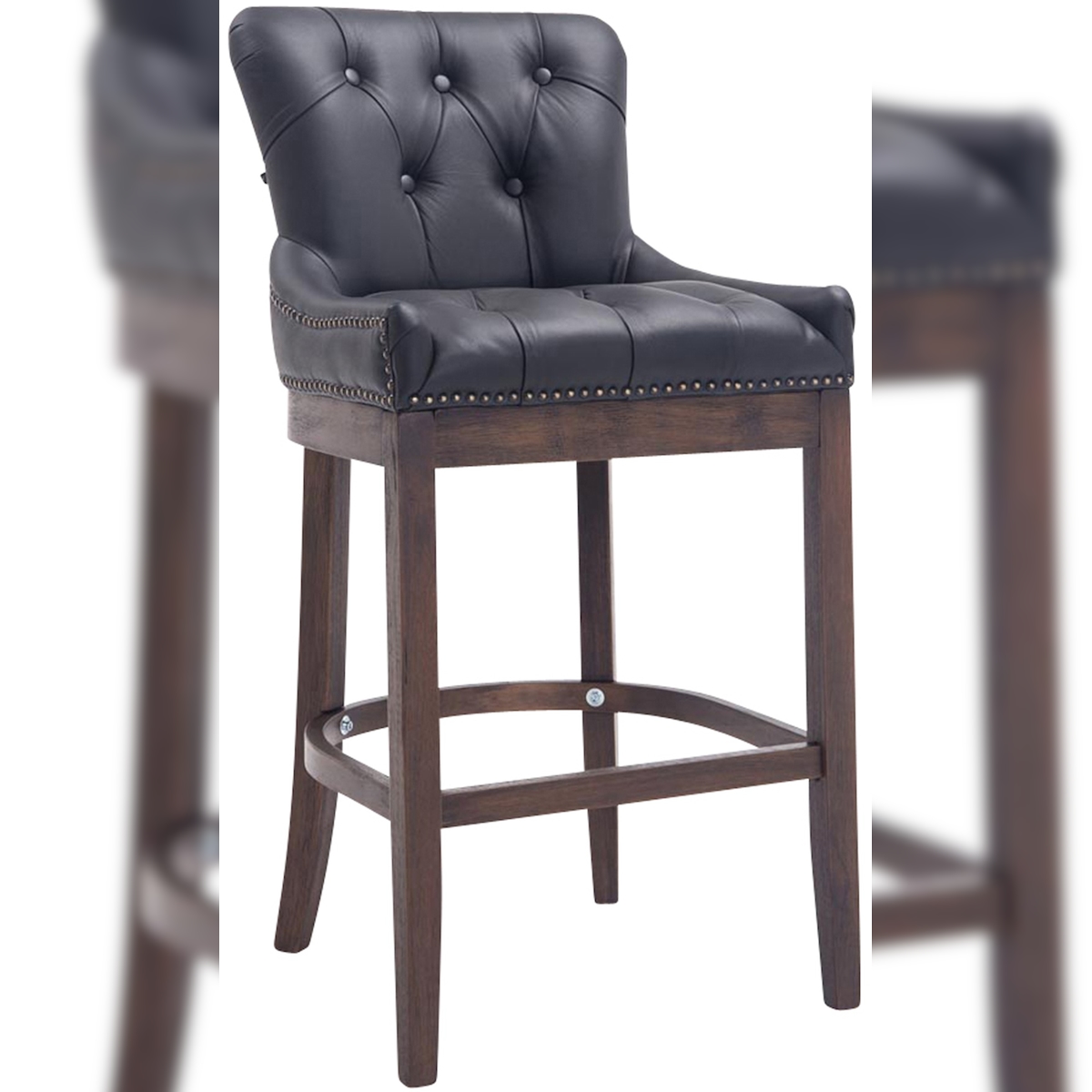 DELUKE Barhocker KAGAD - Echtleder Schwarz 55x57x109 cm Dunkelbraun | Barstuhl Mit Lehne Tresenhocker Tresenstuhl Kneipenhocker Kneipenstuhl