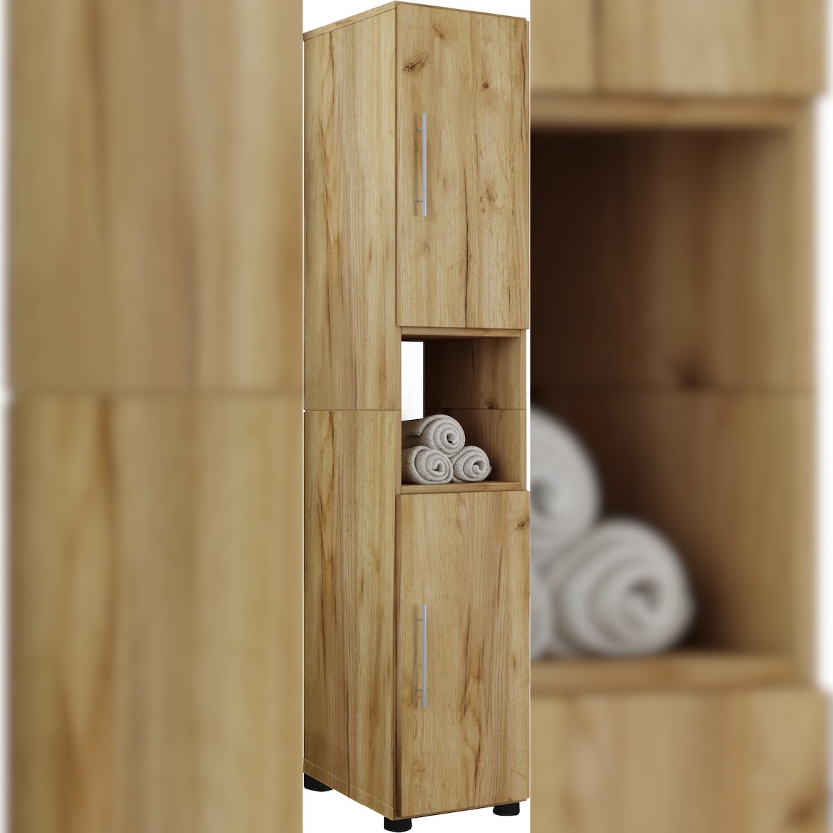 VCM Badmöbel Hochschrank Flandu Honig-Eiche H. 153 x B. 31 x T. 30 cm