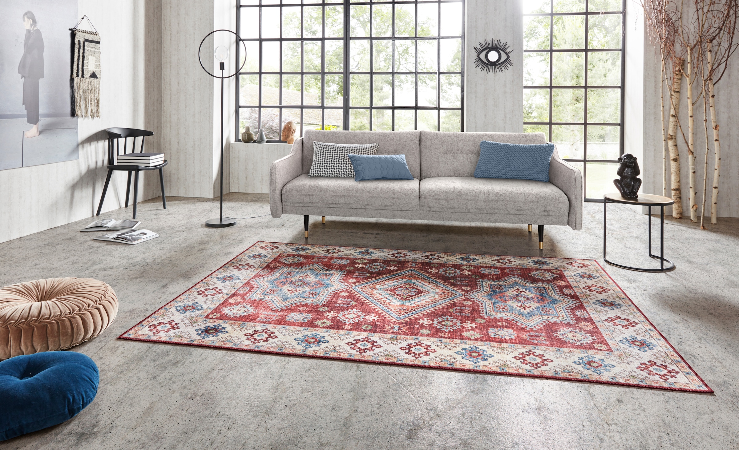Teppich NORTHRUGS "Gratia" Gr. 6, rot (rubinrot), B:200cm H:5mm L:290cm, Polyester, Teppiche, Orientalisch, Vintage, Flachgewebe, Läufer, Wohnzimmer, Schlafzimmer