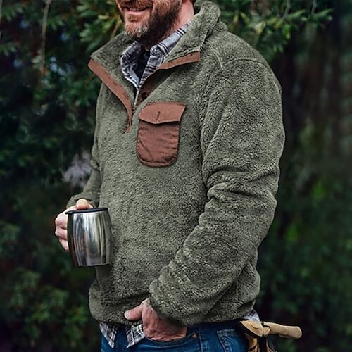 Per uomo Maglia Pile polare Verde militare Verde Grigio chiaro Verde chiaro Colletto Mao Blocco di colori Patchwork Tasca Sport Outdoor Quotidiano Ferie Poliestere Streetwear Essenziale Casual