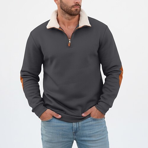 Per uomo Maglia Felpa in pile Maglione Felpa con zip corta Nero Blu marino Cachi Grigio chiaro Grigio scuro Colletto Mao Mezza zip Blocco di colori Patchwork Sport Outdoor Casuale Quotidiano