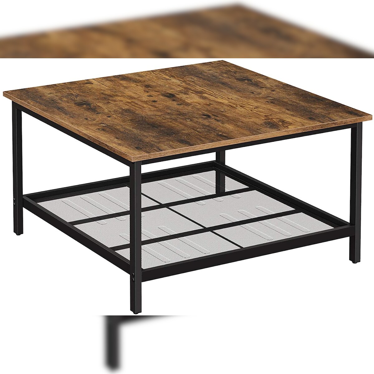 UAC Couchtisch 80 x 80 x 45 cm, quadratisch, mit Gitterablage, Wohnzimmertisch, Kaffeetisch, Sofatisch, aus Stahl, vintagebraun-schwarz