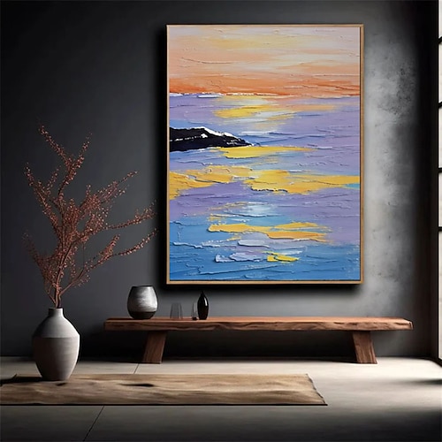 dipinto a mano, dipinto a mano, dipinto a olio astratto moderno, dipinto a mano, dipinto di paesaggio al tramonto sull'oceano, decorazione per la casa, dipinto astratto, sole, cielo, mare