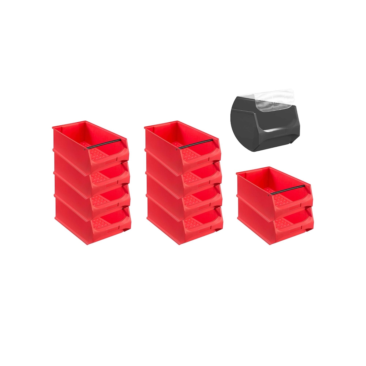 PROREGAL 10x Scharnierdeckel Set Eurobox NextGen mit Schaumstoff und 2 rote Schiebeschnappverschlüsse |BxT 40x60cm | Eurobehälter