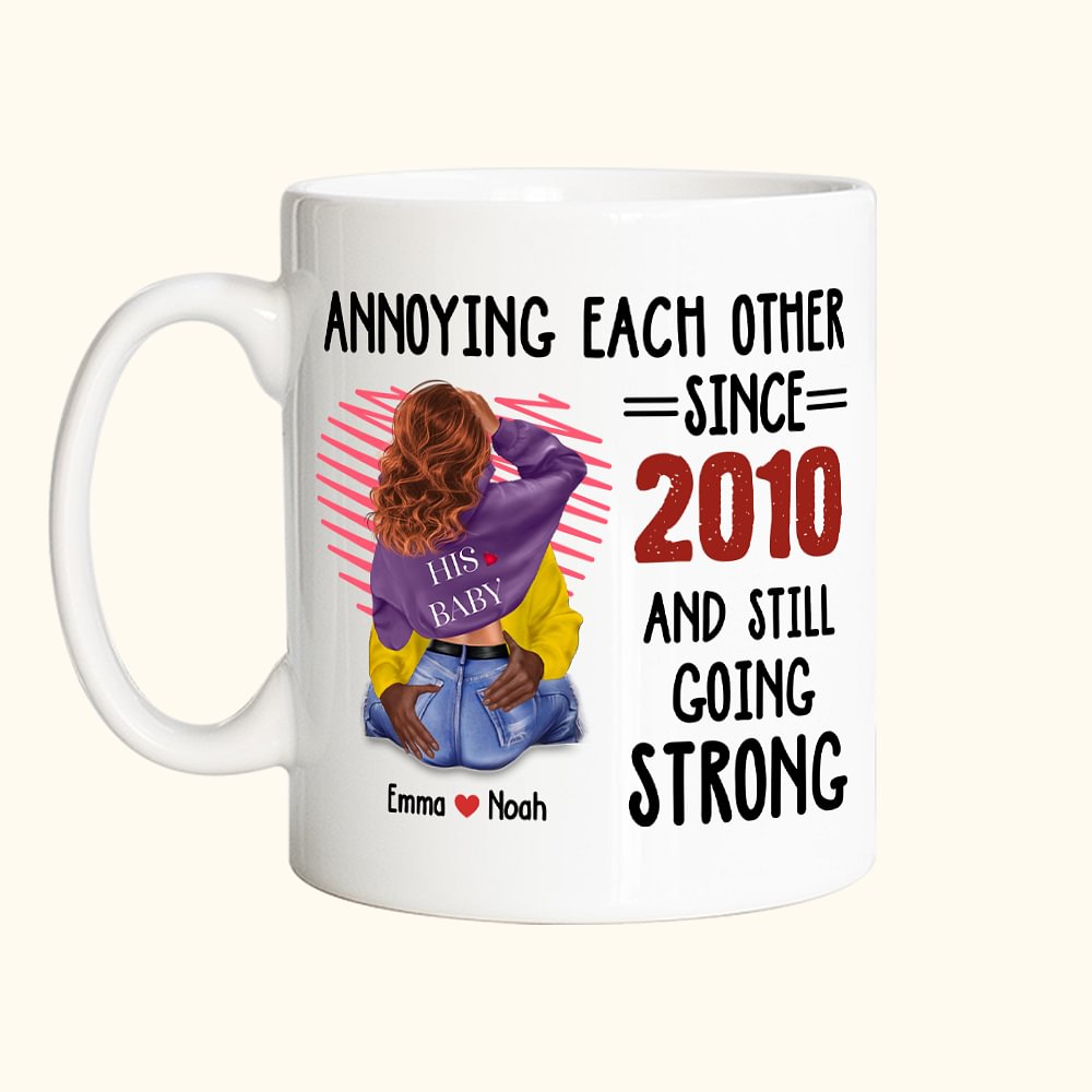 Gepersonaliseerde Line Heart Witte Keramische Mok met Naam Vervelen Elkaar Sinds Jaren En Nog Steeds Sterk Valentijnsdag Cadeau voor Koppel