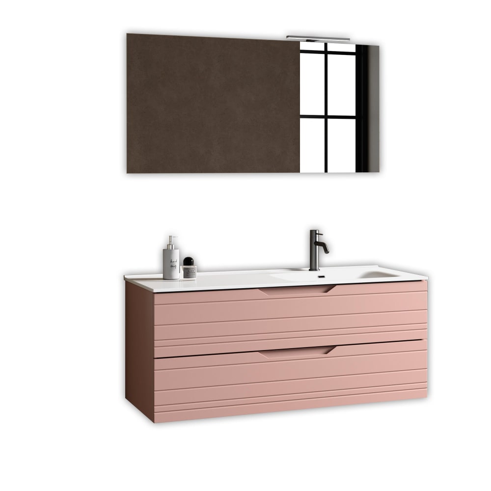 Composition de salle de bain vasque droite 4 pièces en MDF rose poudré