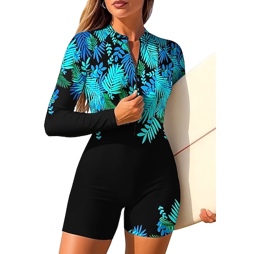 Per donna Top sottomuta Costume Intero Floreale Stampato Asciugatura Rapida Leggero Traspirante Manica Lunga Body costume da bagno Cerniera Frontale Surf Spiaggia Sport Acquatici Estate