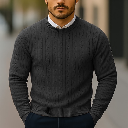 Per uomo Felpa Maglione A Coste Treccia Maglia Top Regolari Lavorato a maglia Slim Fit Semplice Girocollo Maglieria Contemporaneo Casuale Abbigliamento quotidiano Abbigliamento Autunno Tutte le