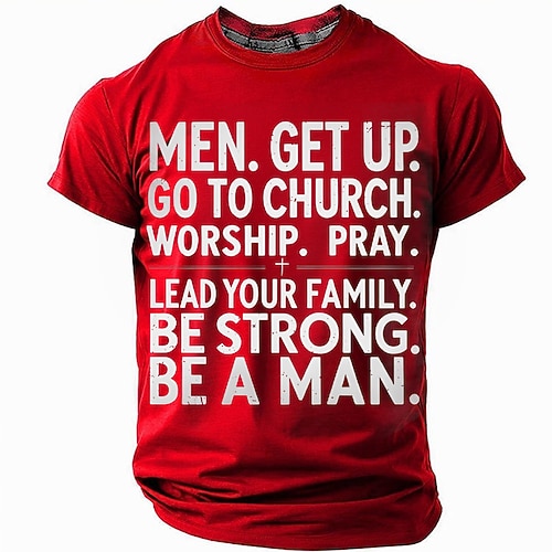 Maglietta Grafica Ispiratrice Cristiana da Uomo - Guida la tua Famiglia Sii Forte Sii un Uomo Fede a Manica Corta