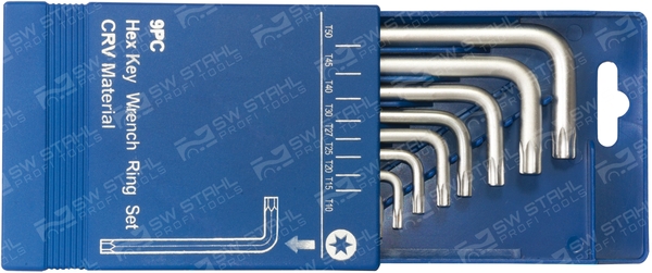 SWSTAHL Winkelschlüsselsatz, T-Profil, T10-T50, extra lang, 9-teilig 04220SB Winkelschraubendrehersatz