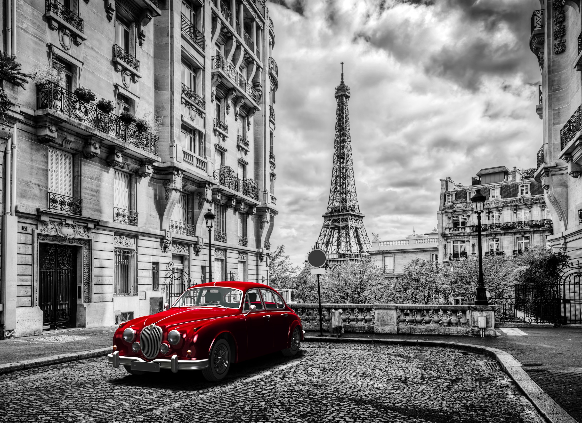 Fototapete PAPERMOON "Paris Eiffel Tower", bunt (mehrfarbig), B:3,5m L:2,6m, Vlies, Tapeten