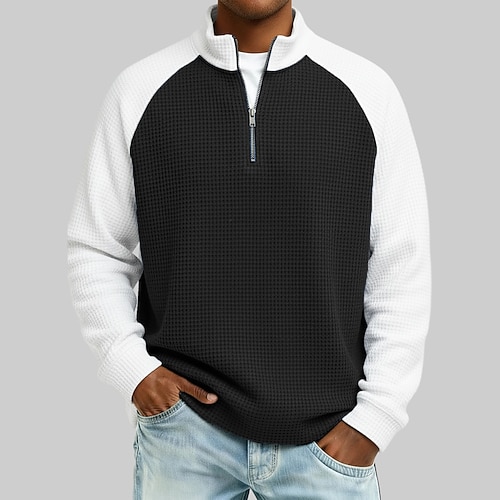 Per uomo Magliette Polo a Nido d'Ape Testurizzato All'aperto Casual Con cerniera Zip a un quarto Manica Lunga Moda Moderno Tinta unica Semplice Lavorato a maglia Autunno Primavera Autunno Autunno